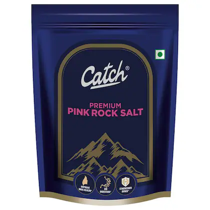 Taste the real rock salt sourced directly from the heart of the mountains. Your Sehatmand* Sathi for your everyday cooking, grilling, roasting and seasoning. The product believed to improve skin health, aid digestion and strengthen bones. Pink Rock Salt is considered an incredible cooking salt by most of the top chefs because it contains higher mineral content. Catch Premium Pink Rock Salt can be used in everyday cooking and baking like any other traditional salt. The product can also suitable to consume during fast (Vrat). *Lower sodium compared to normal salt. STORAGE INSTRUCTIONS: Keep in a cool & dry place.
