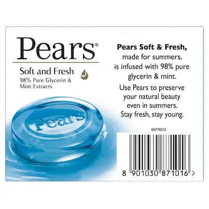 Pears Soft & Fresh Soap is enriched with mint extracts and pure glycerin. These Mint extracts keep your skin looking soft and fresh in the summer, while 98% pure glycerin gently cleanses your skin. So what are you waiting for? Buy the product at the best rate, right here!
