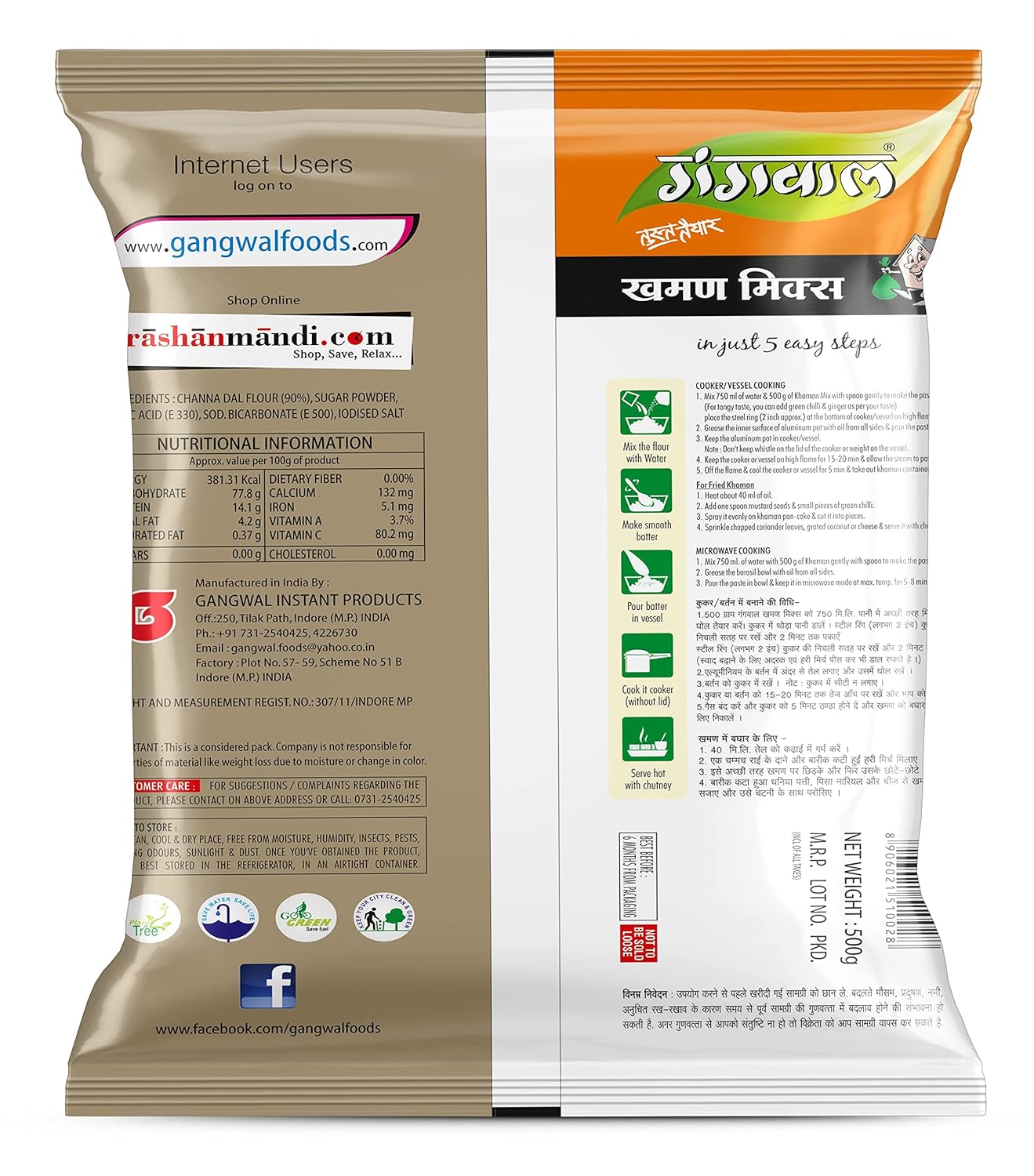 Evergreen Breakfast of gangwal Taste and try gangwal khaman mix, and enjoy your happy moment with us. we always available to serving you with your basic needs and enjoyable moment. explore with other range of gangwal How to make The Gangwal khaman mix is readily mix you don't need to adding any ingredients, gangwal just added all ingredients according to perfect manner. you just need to add water in correct proportion and mix well, leave it for 2 to 5 minute Now your khaman mix batter is ready for the steamed in steamer dhokla / khaman/ idli. now khaman is ready try end enjoy khaman with a gujrati touch, and explore with other range of gangwal.