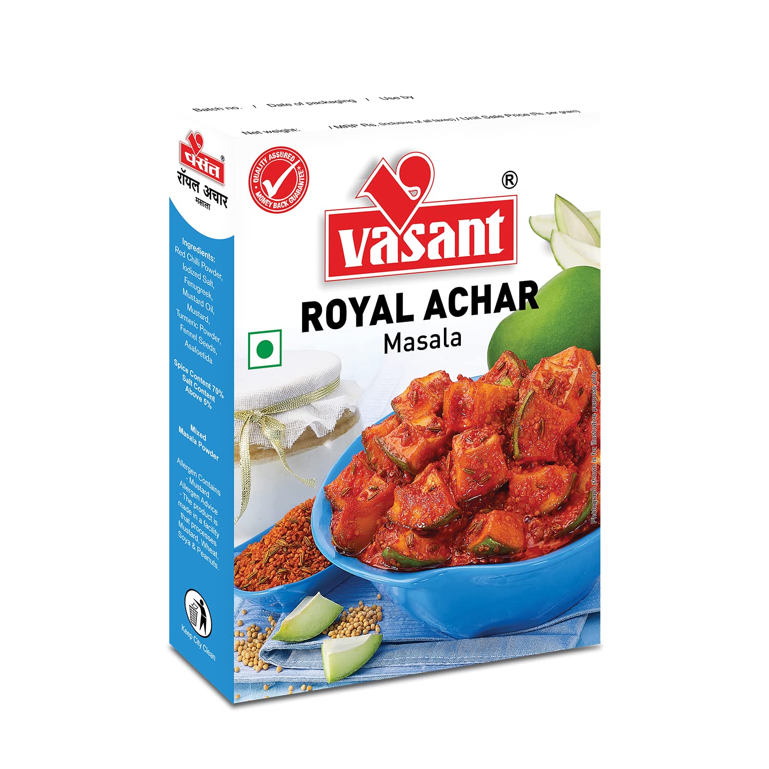 Vasant Achar Masala is extremely popular in the market. This classic blend of spices uplifts the taste of every food. Made out of various spices, it simplifies pickle making at home. Moreover, it is also known as a tastemaker and goes really well with Khakhra, daal, khichdi, etc. Ingredients Red Chilli Powder, Iodized Salt, Fenugreek, Mustard Oil, Mustard, Turmeric Powder and Asafoetida