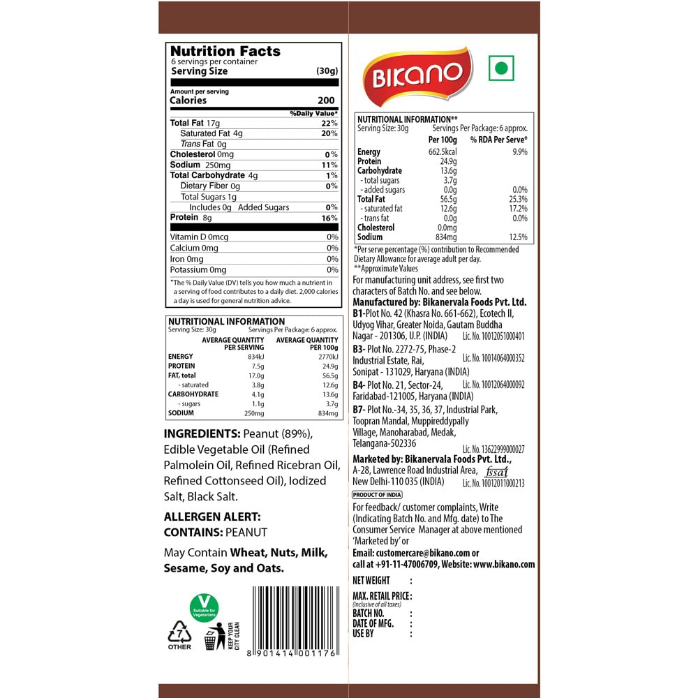Bikano is known to for making authentic, traditional and delicious Indian snacks for several decades. Bikano Salted Peanuts is favourite tea time snack in many homes. It is also used in many cuisines to enhance the taste. This snack is a favourite among kids and adults. This tasty and crunchy snack is also used in like chaat, other cuisines and can also be eaten as a standalone snack. Buy this product online today!