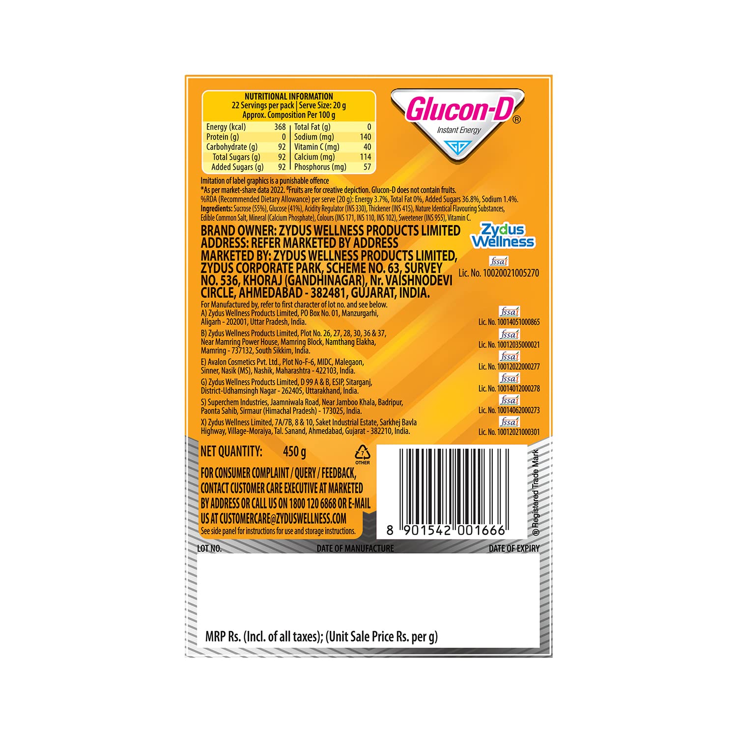 Summers can be daunting and especially when there's an enormous scorching sun always ready to drain out your energy and stop you from being the best of you. But thank god there is Glucon-D! Glucon-D contains glucose that helps replenish body glucose and fills you with the energy required to stay active. It is easily absorbed by the body, thus giving out an instant energy boost and refreshment. Enriched with Vitamin-C and Minerals, including Calcium and Phosphorus, this glucose drink helps charge you up to fight tiredness and promotes mental alertness. Add Glucon-D to a glass of water every day to provide growing active children the energy that keeps them going and adults, refreshment after a long day.