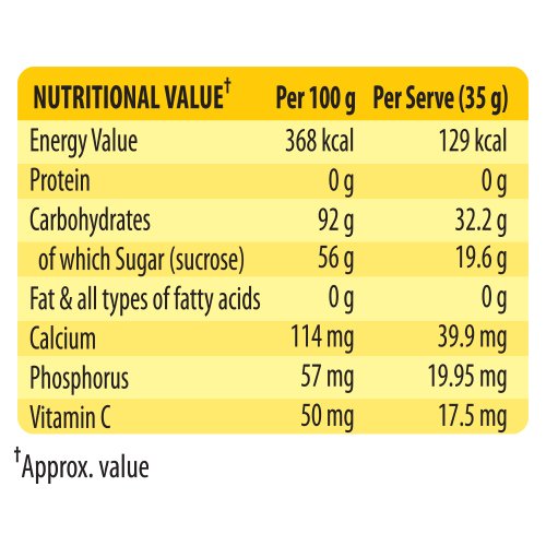 Glucon-D Instant Energy Health Drink contains 99.4% of glucose that helps replenish body glucose and fills you with the energy required to stay active. It comes in a variety of flavours like nimbu, tangy orange and regular. It is easily absorbed by the body, thus giving out an instant energy boost and refreshment. Enriched with Vitamin-D and Minerals, including Calcium and Phosphorus, this glucose drink helps you charge up to fight tiredness and supports immunity. Add Glucon-D to a glass of water every day to provide growing active children with the energy that keeps them going and acts as a refreshment after a long day.
