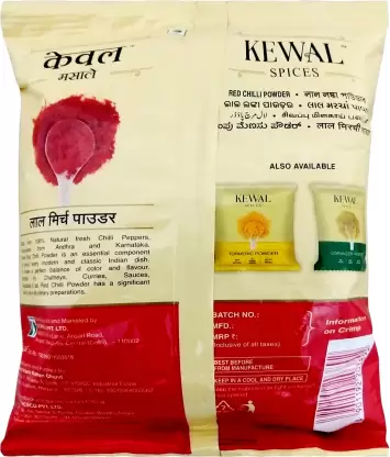 Made from 100% Natural Fresh Chilli Pappers, hand picked from Andhra and Karnataka. Kewal Red Chilli Powder is an essential component of almost every modern and classic Indian DISH. It creates a perfect balance of color and flavour. Whether it's Chutneys, Curries, Sauces, Vegetable & dal. Red chilli powder has significant role to play in all culinary preprations.