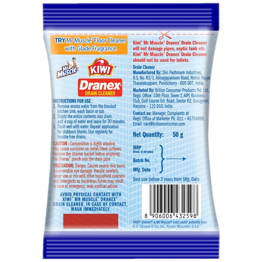Kiwi Cleen drainex drain cleaner effectively cleans blockage of the pipes of washbasins and sinks. Frequently chopped food particles gets jammed and clogged in the entrance of the pipes and produces wreckage that effects the regular flow of water resulting in foul smell, but kiwi kleendrainex drain cleaner removes the blockage very easily without costing much of your time.